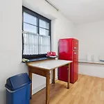 Eine Kaffee-/Teemaschine, ein Kühlschrank und ein Herd in einer voll ausgestatteten Küche sorgen für einen angenehmen Aufenthalt.